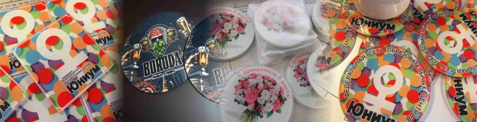 Заказать нанесение рисунка на подставки под кружки и печать на сувенирных костерах можно у нас.