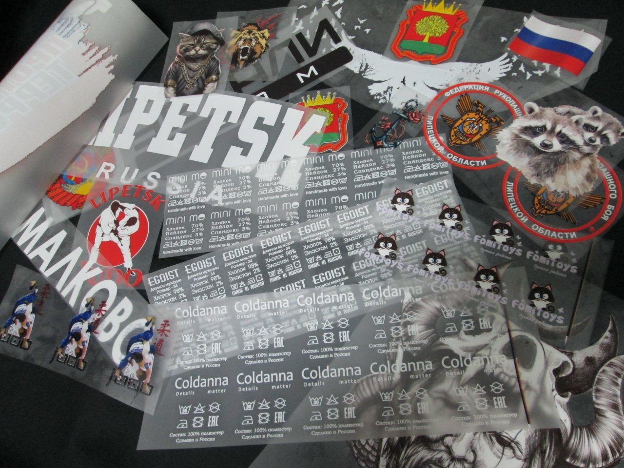 Используйте эти изделия для украшения одежды или в качестве персонализированных бирок на одежде. Их отличает высокая степень детализации и насыщенность цветов, а также возможность печати белым цветом. Благодаря современным технологиям, изображение можно закрепить на ткани с помощью утюга всего за 20 секунд в домашних условиях. Изделия выдерживают многократные стирки, а принты сохраняют свою форму и надежно фиксируются на любой поверхности, которая не расплавится при воздействии утюга.